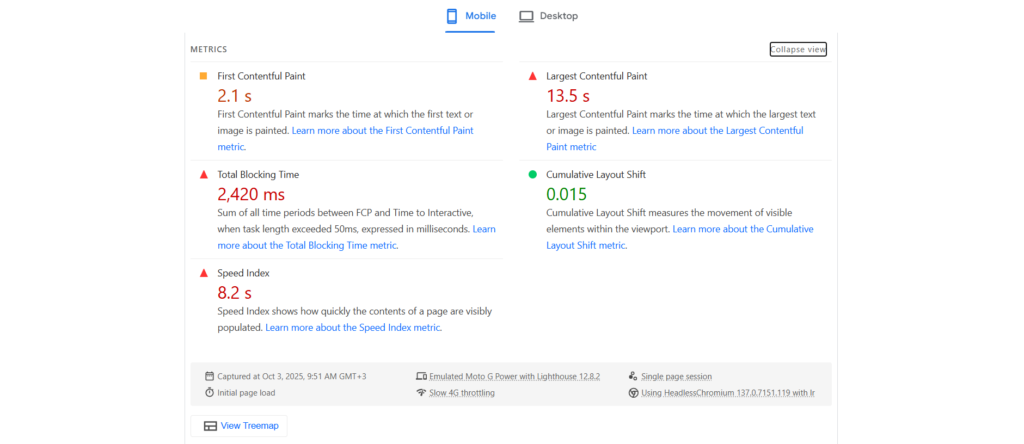 This explains why PageSpeed Insights showed a faster LCP than SpeedVitals — it’s reflecting certain field conditions where the page may render sooner. But the higher TTFB in the PageSpeed report shows that the server still isn’t responding quickly enough, which can drag down the performance score overall.